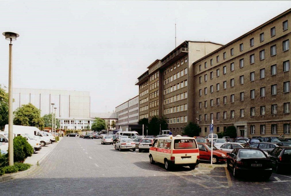 Foto: Zentrale des MfS in Berlin-Lichtenberg: Rechts Blick auf das Gebäude der Leitung des Ministeriums (Haus 1), dahinter rechts in Weiß das Gebäude der Spionageabwehr (Haus 2), Foto: Bettenburg_CC BY-SA 2.0