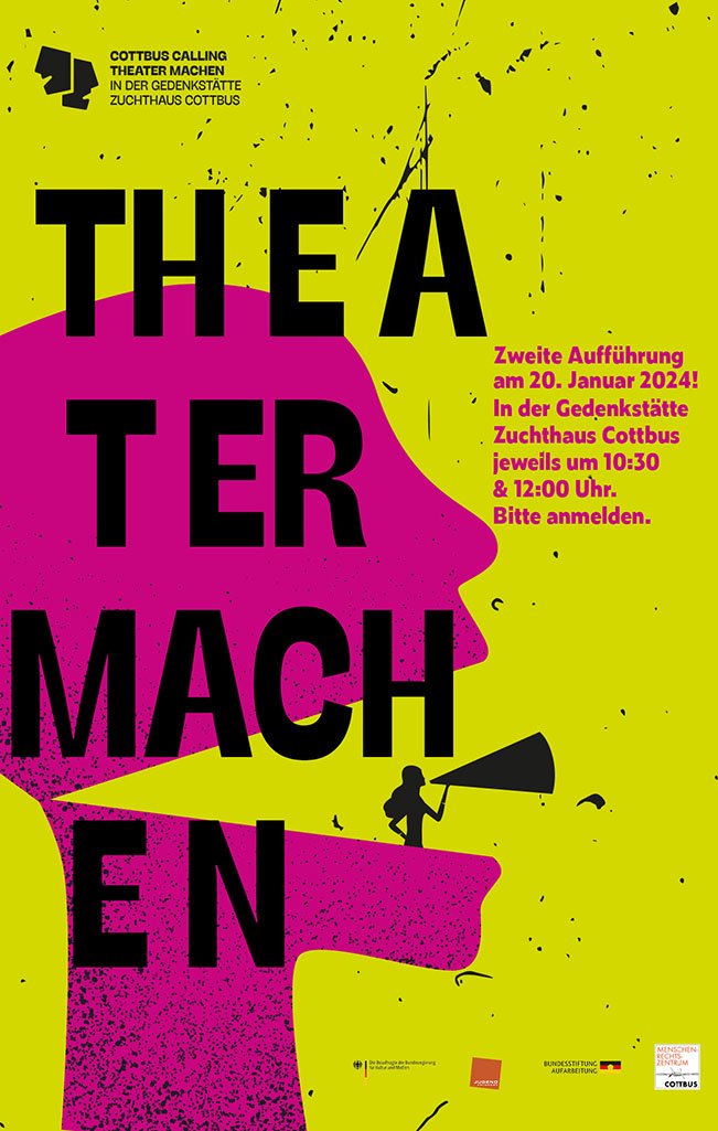 Achtung: Begrenztes Platzkontingent! Ab sofort können Sie Plätze für die nächsten Aufführungen am 20. Januar um 10:30 und 12 Uhr unter der E-Mail-Adresse bildung@menschenrechtszentrum-cottbus.de oder per WhatsApp: 0163 25 26 406 reservieren.